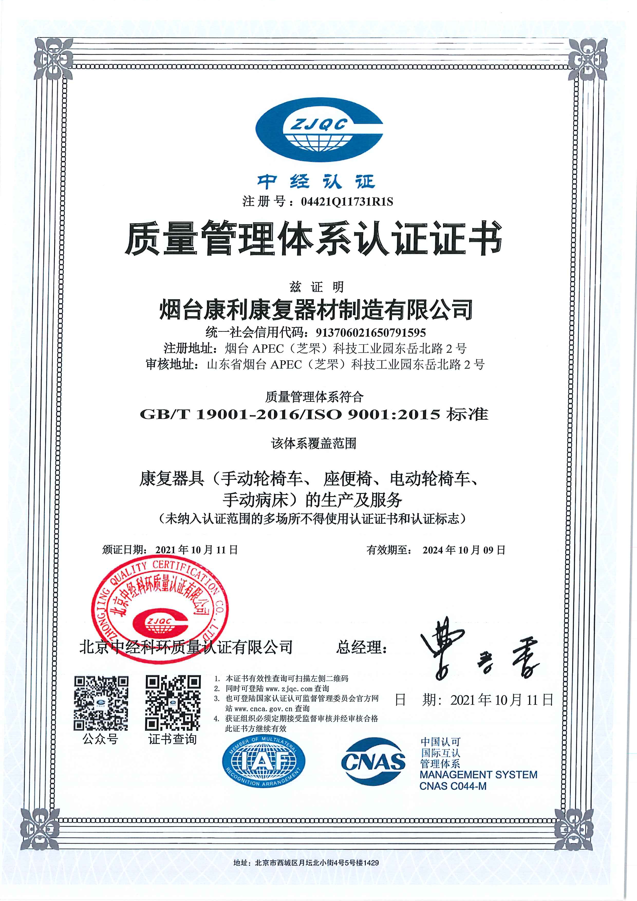 質量管理體系認證證書 -